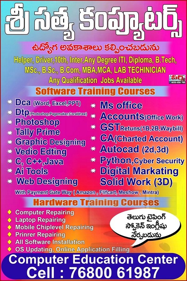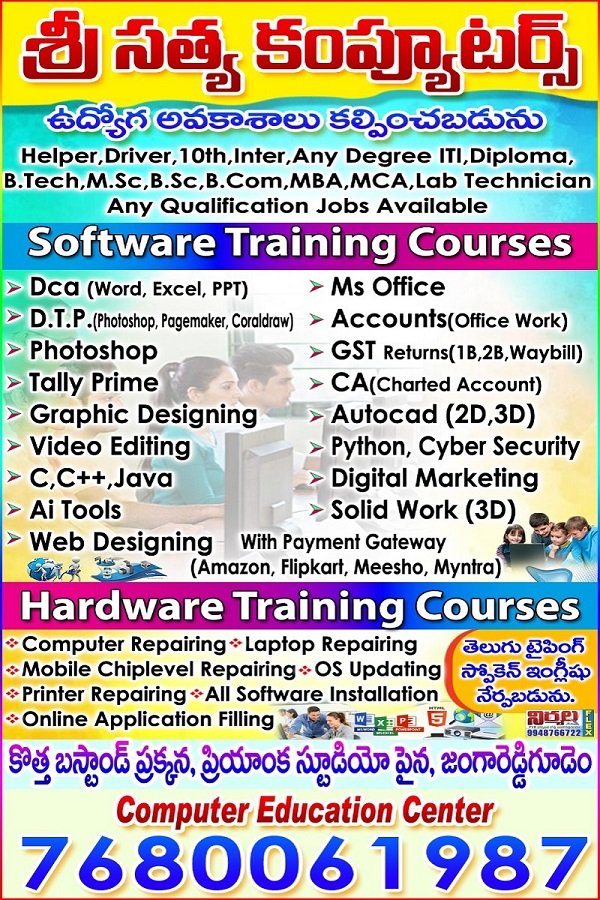 Mr. Adapa Gangadar Rao is the visionary Founder and CEO of Sri Sathya Computers. With strong technical knowledge and years of experience in computer education and training, he is dedicated to providing quality computer education to students and job seekers.Upgrade your skills and build a bright career with our job-oriented computer courses. We provide practical training, experienced faculty, and easy-to-understand lessons for students, job seekers, business owners, and professionals. Our courses are designed to help you gain confidence in using computers for office work, business, and advanced IT careers.
